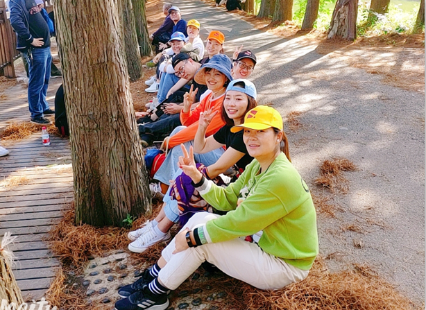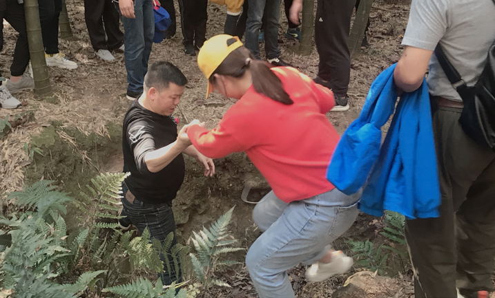 午饭过后,经过一番休整大家满血复活,向徒步穿越起点前行,穿过一片片竹林,十月的秋季,层林尽染,满地金黄。竹笋还未发芽,但是依旧挡不住竹林的翠绿,穿越到竹海深处阳光被挡在竹林之上,只能射进来几缕微光,尽显朦胧,美不胜收。地上满地落叶,脚下沙沙作响,好一幅天然风景画!大家一边走,一边谈笑风生,一边拍照,一边不忘回头看看落在后面的同事,放慢脚步等着大部队。穿过竹海,进入丛林,红蹬蹬的柿子印在眼前,大家欢呼雀跃,好似发现了新大陆。走过平原穿过山丘,大家手拉手互相搀扶着,一个拉着一个,形成坚实的人链。经历了整整2个多小时的徒步穿越,终于到达终点。大家都瘫坐在地上小憩着,三三两两聚在一起,谈论着今天的收获和喜悦。