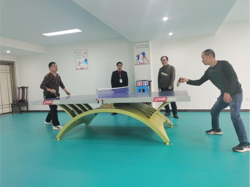 乒乓球选手汗水与球拍挥动如雨,羽毛球选手发丝与球一起舞动,中国象棋选手紧皱眉头一言不发排兵布阵,台球选手紧盯目标出手如风一气呵成,大家都在各自的比赛场上斗智斗勇,你来我往,捉对厮杀。表面风平浪静,实则暗流涌动,都想赢下对决。各自的“亲友团”发挥着啦啦队的作用,为各自的选手蓄力、加油、助威,现场欢声笑语此起彼伏,惋惜叹息声夹杂其中,大家用自己的热情点燃了整个赛场。