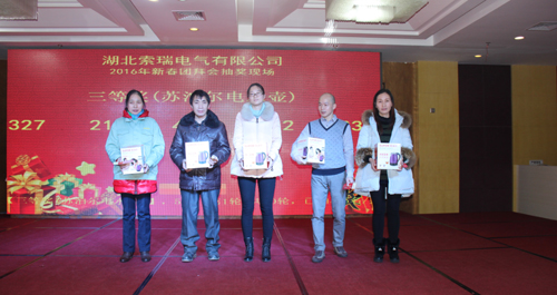年会现场,公司副总经理戴晓东向全体员工致新年贺词,感谢全体员工辛勤付出和对公司做出的贡献,并表达了对公司员工及家人最深切的祝福和对索瑞电气未来发展的期许。领导讲话饱含深情,催人奋进,必将强力助推2016年工作再上一个新台阶。公司副总兰世平感谢员工一年来的辛苦付出,现场宣读了年度表彰文件,表彰了在2015年工作中表现优异的8个先进集体、60名先进个人,鼓励大家再接再厉,再创佳绩,为推动公司持续稳步发展再立新功。最后,董事长任昌兆带领公司高层及部门责任人向全体员工敬酒,并送去新年的祝福,愿公司在新的一年取得更加辉煌的业绩。