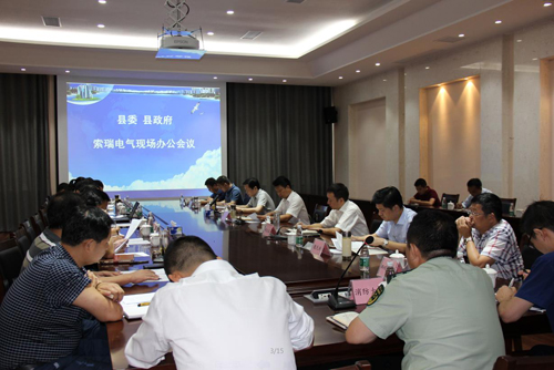 2016年8月26日,公安县委书记向斌、代县长杨运春带领县直相关部门负责人到我司现场办公,协调解决我司生产经营中遇到的难题。       县领导陈万林、魏天洪,县经济开发区管委会主任郭劲松及13个县直相关部门(发改局、财政局、消防大队,规划局等)负责人参加现场办公会。       公司总经理任昌兆介绍了索瑞电气发展历程,公司从荆楚大地的一个小厂成长壮大成全国细分行业龙头老大,在技术等方面只有被“抄袭”,没有被“超越”,这是公安人的骄傲。看到成绩的同时,公司必须“百尺竿头更进一步”,仍要不断创新与发展,并介绍了今年索瑞电气的生产经营情况及公司发展中遇到的困难和问题。公司副总就智能化生产线改造,企业融资,政策扶持,光伏发电,人才引进等问题先后作了说明。       县委书记向斌指出,索瑞电气是电表行业的龙头,对公安经济的发展做出了很大贡献。要求各部门要全力支持索瑞电气的发展,对在智能化改造,消防验收,产业链延伸,规划****,光伏发电项目及人才引进等六个方面,各主管部门要进一步明确责任,在资金、政策、简化办理流程等方面给予支持,政策上要予以倾斜。希望索瑞电气立足公安,围绕公安做好后续发展。针对索瑞提出的困难和问题,各直管部门负责人做了表态发言:全力支持配合索瑞电气解决目前所遇到的难题,为企业提供便利条件。       公司总经理任昌兆表示,索瑞电气十年的建设发展得到了县委,县政府的大力支持,索瑞电气将不断壮大公司实力,努力为公安经济发展做出新的更大贡献。