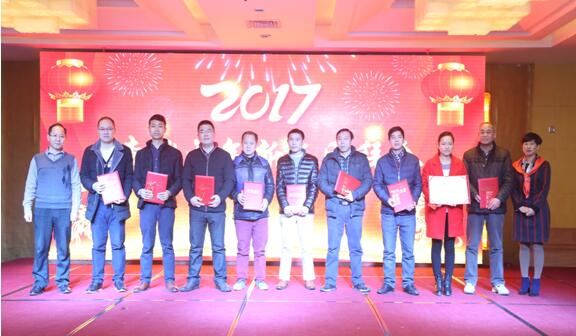 年会现场,公司副总经理戴晓东代表公司向全体员工及家属致以新春的慰问和节日的祝福。戴总在讲话中回顾了2016年工作所取得的突出成绩,对全体员工的辛苦工作和不懈努力表示感谢,并对全体员工提出了殷切希望,要求大家在新的一年里抢抓机遇、攻艰克难、再铸辉煌。公司副总兰世平现场宣读了年度表彰文件,表彰了在2016年工作中表现优异的9个先进集  体、58名先进个人,鼓励大家再接再厉,再创佳绩,为推动公司持续稳步发展再立新功。最后,董事长任昌兆带领公司高层及部门主管以上人员向大家敬酒,并送去新年的祝福,愿公司在新的一年取得更加辉煌的业绩。