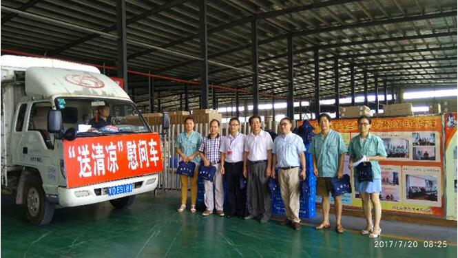 7月20日上午,为了切实保障公司职工的生命安全和身心健康,更好地让员工开展日常工作,防止炎热夏季高温中暑,由县总工会牵头向我公司冒着烈日工作的一线员工送清凉。将夏季防暑降温用品风油精、十滴水、藿香正气液、人丹、矿泉水等送到现场。这些防暑用品也许并不贵重,但它表达了企业工会关心职工、体恤职工的浓浓情意,也给炎炎夏日带来一丝惬意、一缕清凉!