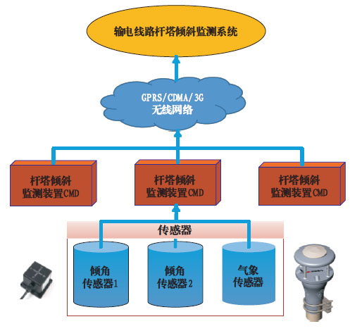 系统简介 输电线路杆塔倾斜在线监测系统通过测量杆塔、拉线的倾斜角度、环境风速、风向、温度、湿度等参数,并将测量结果通过GPRS/CDMA/3G/OPGW光纤等方式传送到接收中心,中心软件可及时显示出杆塔的倾斜状况、倾斜趋势、倾斜速度,在倾斜角度到达某值时以短信、界面、警笛等方式发出报警信息。使维护管理人员对线路运行状况予以关注或采取相应处理措施,减少因杆塔倾斜而引发的事故,同时协助运行部门查找杆塔故障点,指导检修和维护。 系统构成