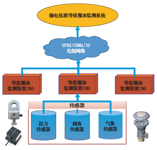 系统简介 输电线路覆冰在线监测系统,是借助现有的GPRS/CDMA/3G/OPGW光纤等通信网络进行实时数据传输,其本身集成了气象条件监测(温湿度、风速、风向等),利用线路导线覆冰后的重量变化以及绝缘子的倾斜/风偏角改变,结合前人研究成果进行覆冰载荷计算、覆冰生长机理、导线舞动、杆塔和金具强度校验以及绝缘子冰闪方面的理论研究,结合专家知识库和各种修正理论模型给出冰情预报,及时给出除冰信息,有效预防冰害事故。 系统构成