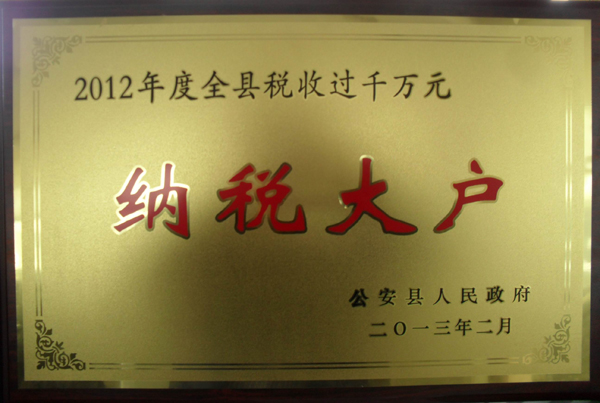 2012年度全县税收过千万元