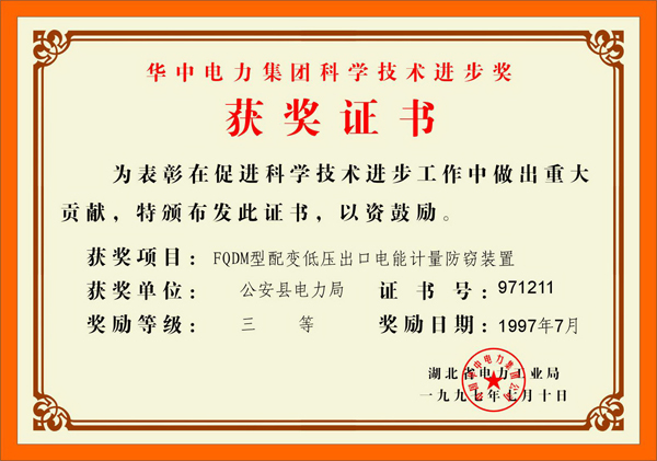 科技进步三等奖(1997)