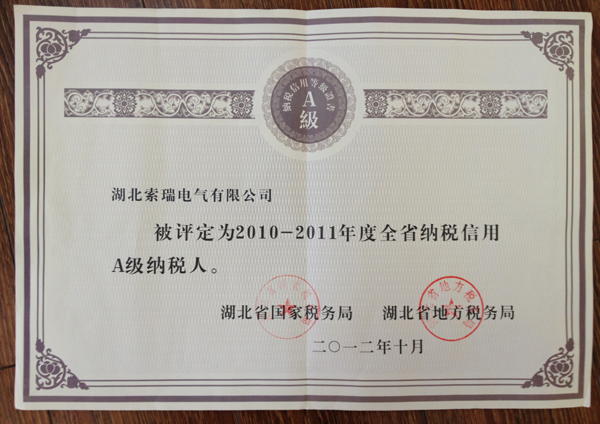 纳税信用等级证书A级-201