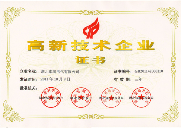 省高新技术企业证书(索瑞电气